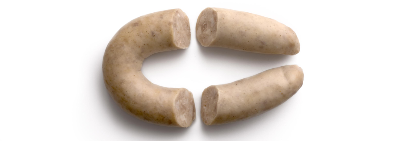 Meat product (fresh or cooked), stuffed into a casing made from the large intestine of the pig, prepared using traditional methods from a mixture of finely chopped pork meat (leg, shoulder or loin and bacon fat) which is then seasoned with salt, pepper and other spices.