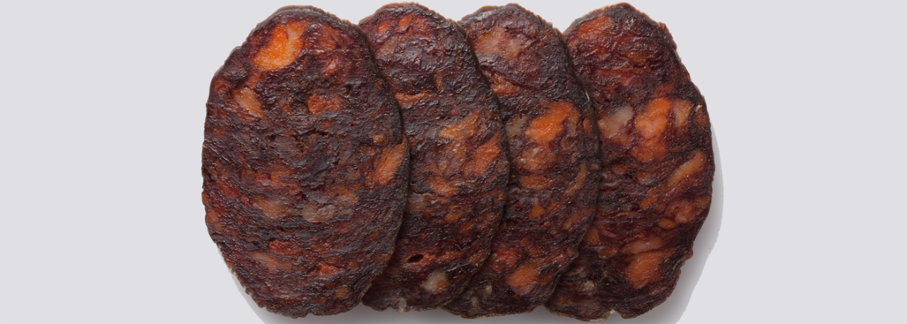 Sausage product made with fat from Ibérico pork and coagulated blood. This product is normally seasoned with salt, garlic, and paprika as well as other spices and condiments. It has a curing process of approximately two months. It can be eaten raw, fried, roast, grilled or in casseroles.