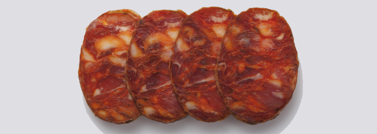 Chorizos should have a firm and compact consistency and be cylindrical, and more or less regular in shape. They should also have the characteristic chorizo aroma and taste, essentially due to the spices and condiments, specially pimentón and garlic, as well as to the curing process.