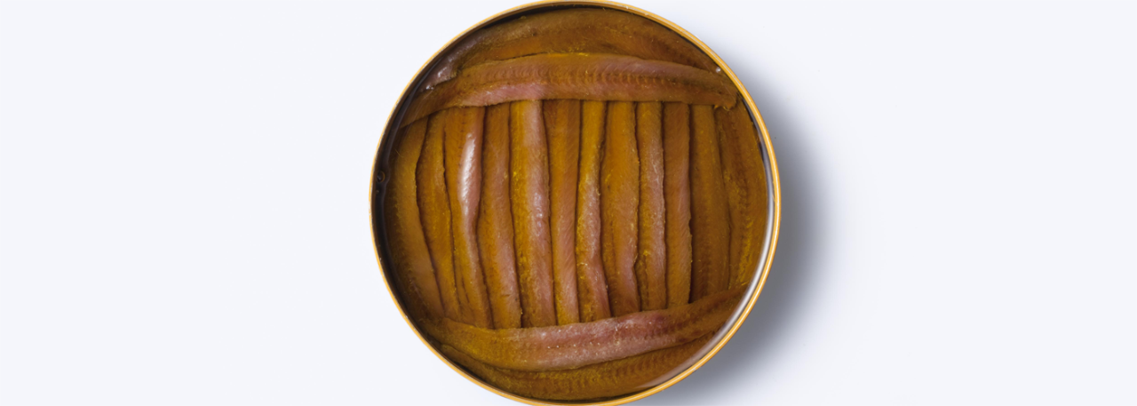 The fresh fish –known as anchovy, bocarte or boquerón according to the Spanish region– is cleaned by removing the head and the innards and packing in salt, thereby converting it into a salted anchovy in brine. The process of curing/maturing must last a minimum of six months, after which the fish is washed, the fillets are removed from the bone, discarding the dorsal fin and scales, and then packed in olive oil and sealed.